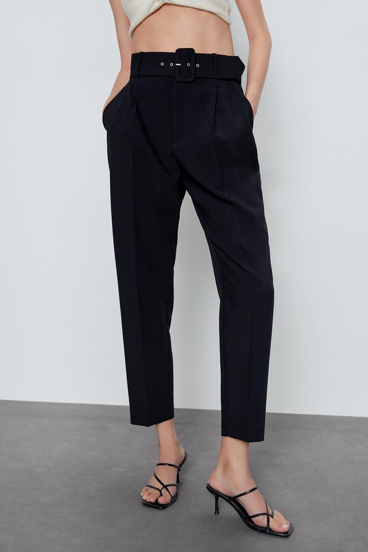 送料込 追跡有 Zara ベルト付きハイウエストパンツ Zara パンツ 4387 030 Buyma