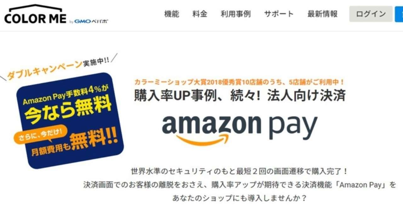 終了 決済手数料0 今なら月額費用も無料 Amazon Pay 新規導入ダブルキャンペーン Ecお役立ち情報 ネットショップ運営サービス カラーミーショップ