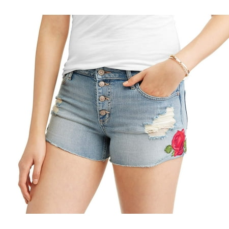 No Boundaries Juniors Flower Embroidery High Waist Distressed Denim Shorts Walmart Com Walmart Com