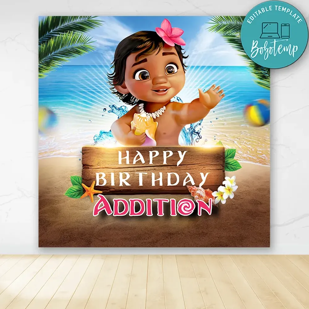 Printable Baby Moana Backdrop Digital File Instant Download Bobotemp