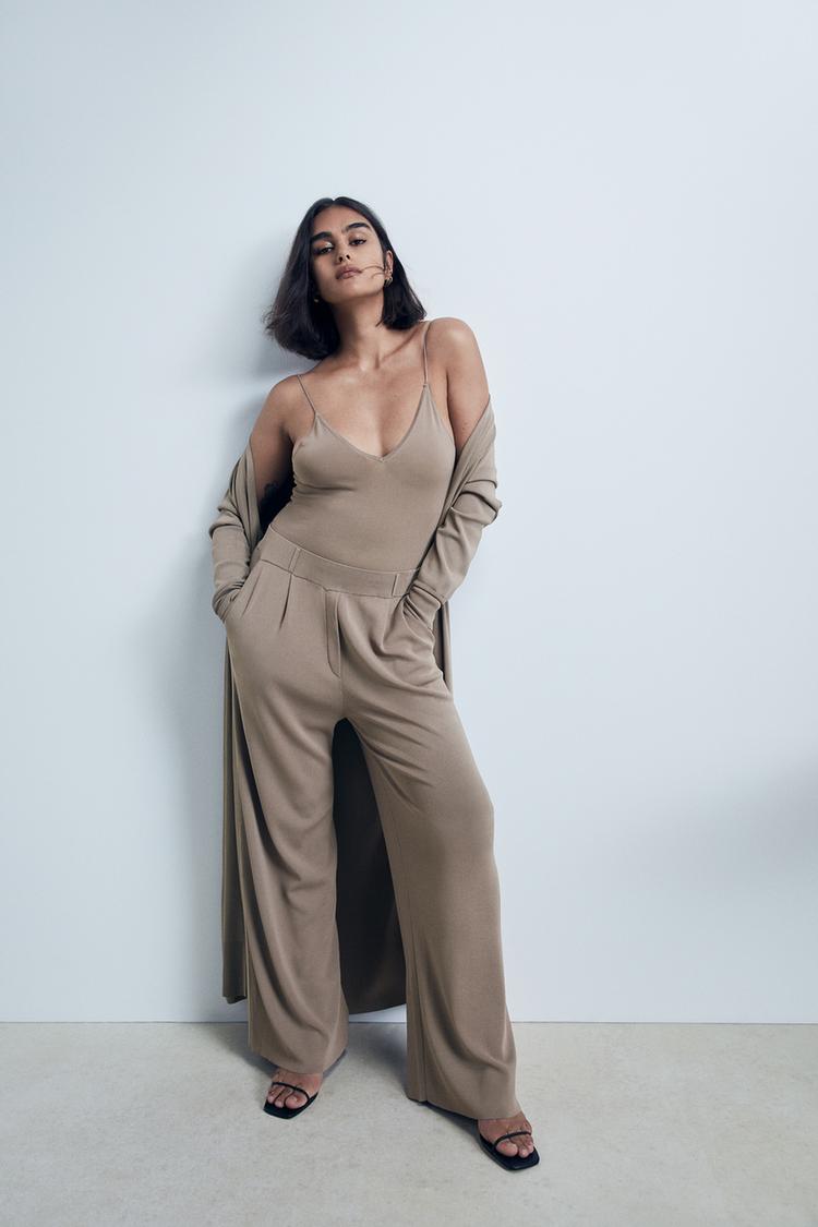 ドイツ発 Zara 新作 ワイドカットニットパンツ Mink Zara パンツ Buyma